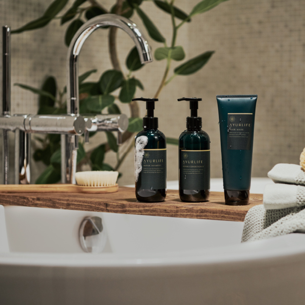 ชุดผลิตภัณฑ์ดูแลเส้นผมที่ใช้สมุนไพรมากมายซึ่งใช้กันมาตั้งแต่สมัยโบราณในอินเดียและศรีลังกา
