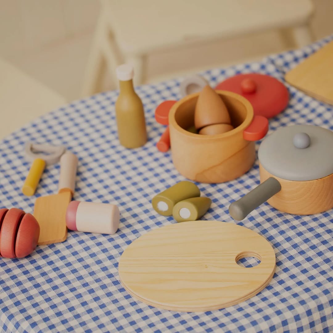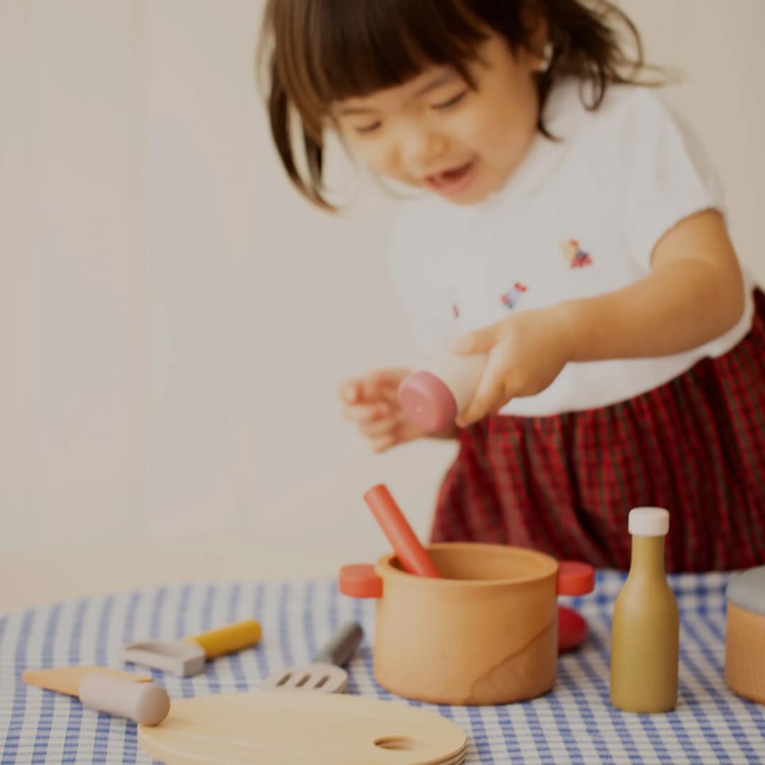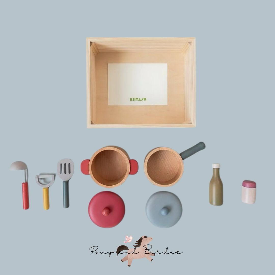 มาพร้อมกับ อุปกรณ์ประกอบฉากที่ใช้ทำอาหาร เช่น เครื่องปรุงรสมีลูกบอลไม้อยู่ข้างใน และเมื่อเขย่าจะมีเสียงคลิกเบาๆปล่อยไปตามจินตนาการได้ไม่รู้จบค่ะ