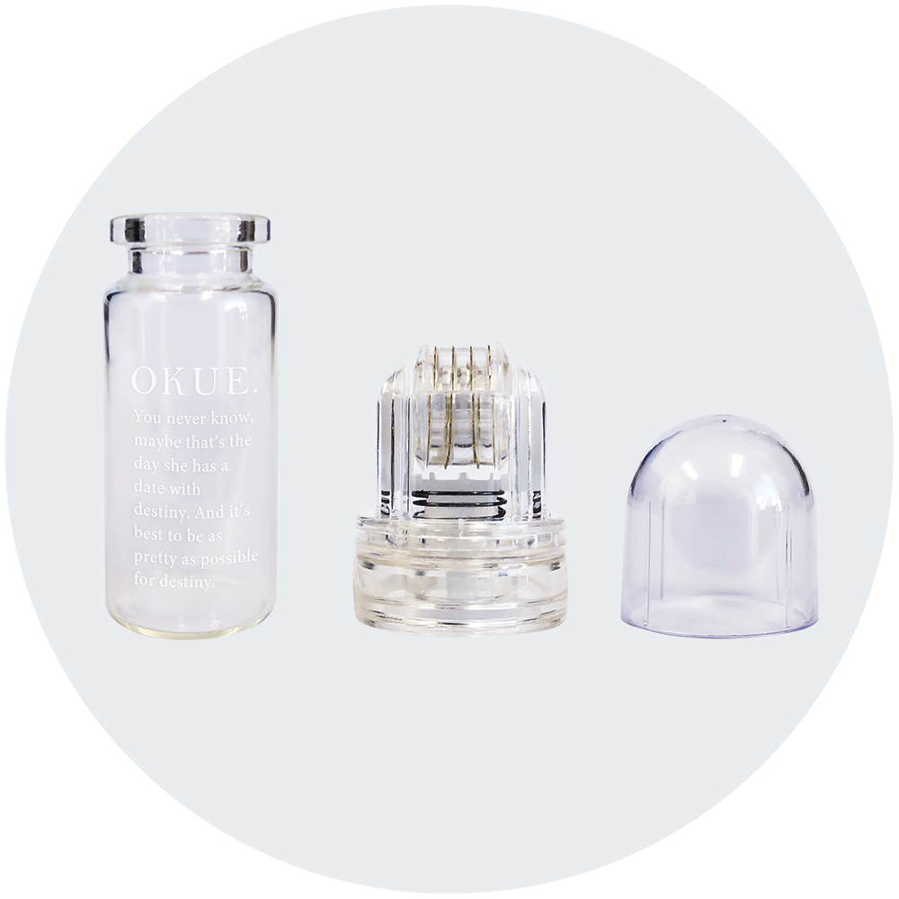 Okue Magic Bottle สินค้าที่ได้รับเลือกให้เป็น Must have product ประจำปี2021 น้องคือขวดวิเศษที่จะช่วยเจาะผิวให้ส่วนผสมจากสกินแคร์ที่ใช้อยู่ซึมเข้าสู่ผิวได้ลึกขึ้น สามารถใช้กับเซรั่มที่มีอยู่ได้ ส่วนหัวเจาะเป็นลูกกลิ้งไม่จำเป็นต้องออกแรงให้เจ็บผิว เพียงกดเบา ๆ ได้เลยค่ะ ลูกกลิ้งเป็นไทเทเนียม อ่อนโยนสำหรับผู้ที่แพ้โลหะ มีความเสี่ยงน้อย สามารถถอดล้างได้ทุกชิ้นส่วนค่ะ